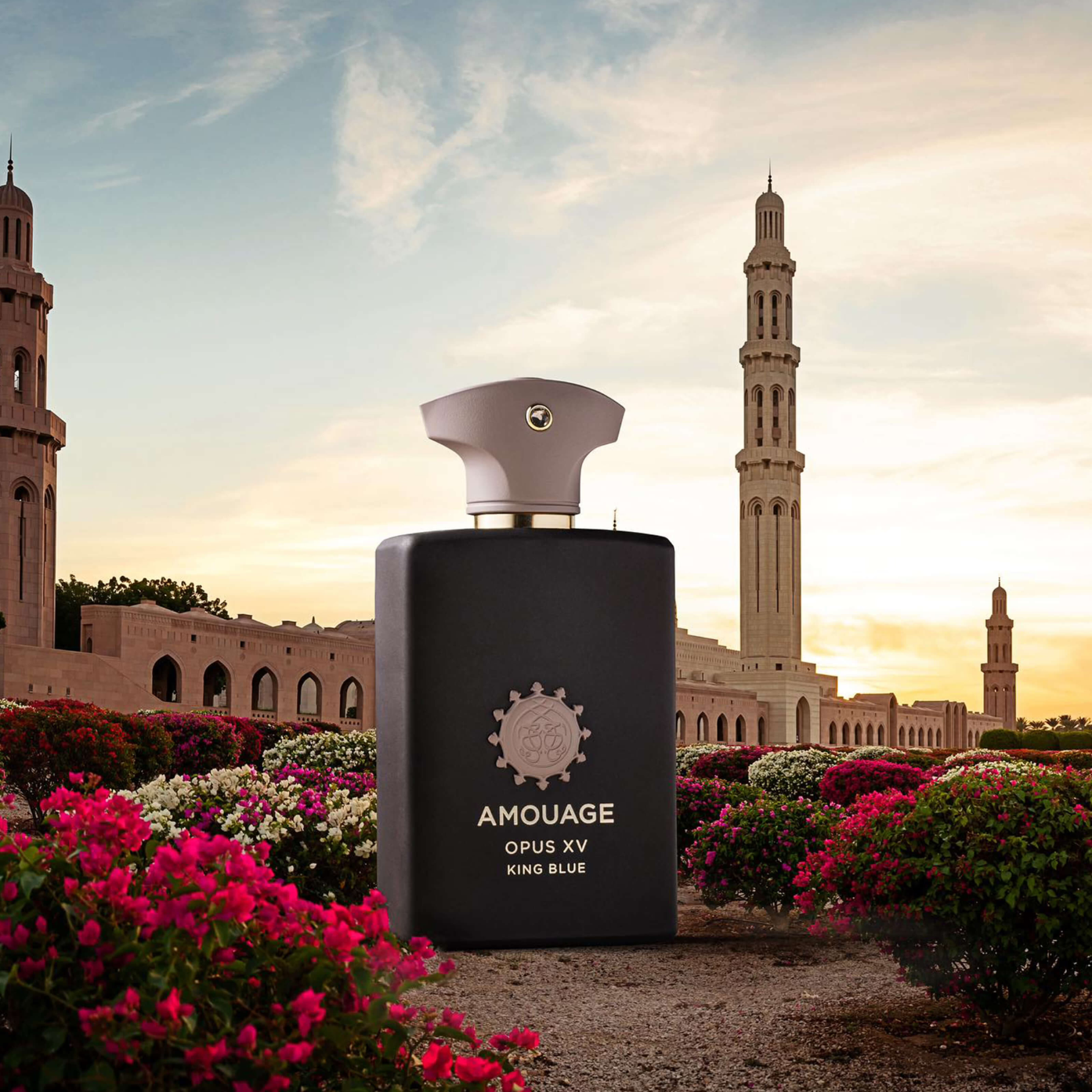 Experience the refined elegance of Amouage Opus XV King Blue—a woody oriental masterpiece that harmoniously blends depth and sophistication.