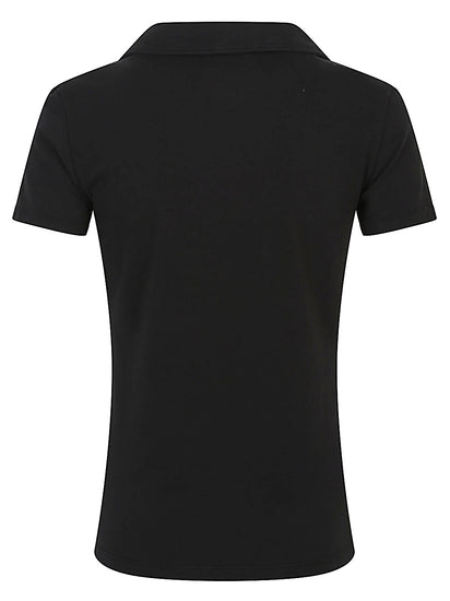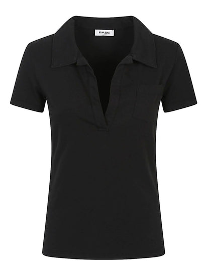 Black polo shirt, half sleeves, patch pocket on the chest, straight hem. Cotton polo shirt Size and Fit - This piece fits true to size. We recommend you get your regular size. Model is 1,75m / 5ft 8in wearing size 40 (IT)
