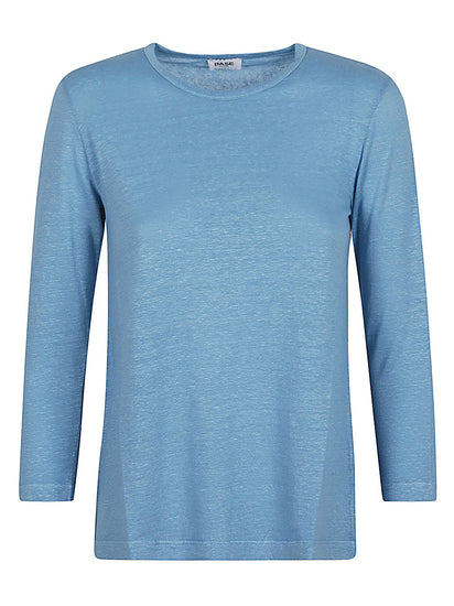 T-shirt tinta unita, maniche corte, girocollo e orlo dritto. Linen jersey long sleeve t-shirt Size and Fit - This piece fits true to size. We recommend you get your regular size. Model is 1,75m / 5ft 8in wearing size 40 (IT)