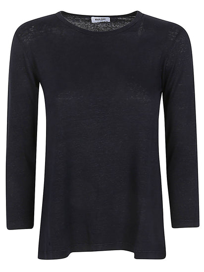 Maglietta con manica a 3/4, spalle cadenti, girocollo e orlo dritto. Linen jersey long sleeve t-shirt Size and Fit - This piece fits true to size. We recommend you get your regular size. Model is 1,75m / 5ft 8in wearing size 40 (IT)
