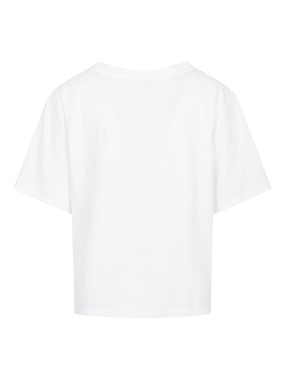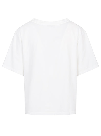 White T-shirt, half sleeves, crew neck, straight hem. Cotton t-shirt Size and Fit - This piece fits true to size. We recommend you get your regular size. Model is 1,75m / 5ft 8in wearing size 40 (IT)