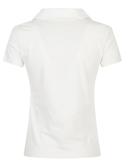 White polo shirt, half sleeves, patch pocket on the chest, straight hem. Cotton polo shirt Size and Fit - This piece fits true to size. We recommend you get your regular size. Model is 1,75m / 5ft 8in wearing size 40 (IT)