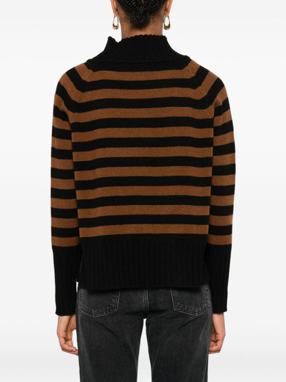 black and brown cashmere high neck ribbed cuffs ribbed hem Striped cashmere sweater