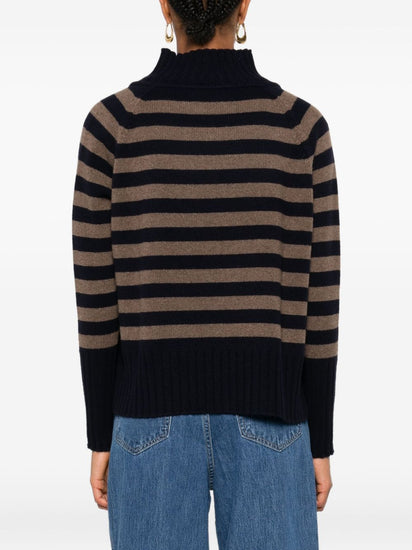 brown and black horizontal stripes high neck long sleeves ribbed cuffs ribbed hem Striped cashmere sweater