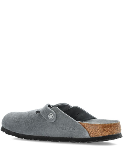 grey suede upper single buckle fastening Boston suede leather slippers Size and Fit - Narrow width