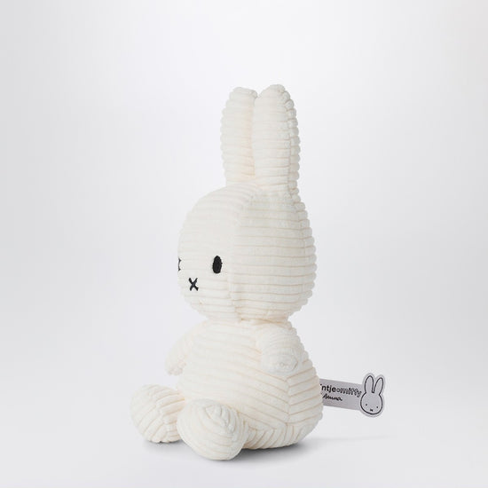 Bon Ton Toys plush in the shape of a bunny made of white corduroy with recycled polyester filling.