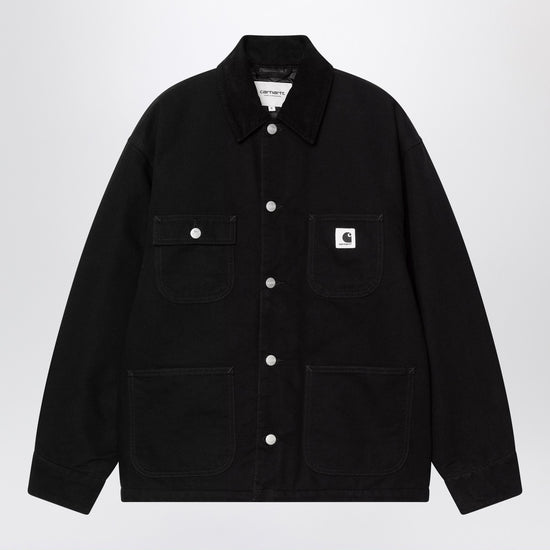 Carhartt WIP jacket in black Dearborn canvas, a sturdy organic cotton fabric that softens with use over time, characterized by quilted lining, loose fit, applied front pockets, corduroy collar, triple stitching, long sleeves with adjustable cuffs, and square logo label. Size and Fit - Model wears size S Model measurements: Height: 178 cm Chest: 83 cm Waist: 63 cm Hips: 91 cm
