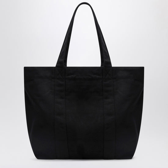 Carhartt WIP bag in heavy Dearborn black cotton canvas, featuring an unlined design, a mobile pocket, a webbing strap with keychain, an external patch pocket, and a square fabric logo label on the front. Size and Fit - Width 53 cm x Height 37 cm x Depth 17 cm Handle drop: 30 cm