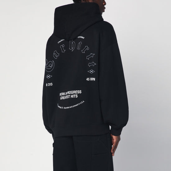 Carhartt WIP sweatshirt in heavy polyester and cotton jersey black, characterized by a balloon cut, wide and comfortable fit, dropped shoulders, ribbed finishes, adjustable hood with drawstring, a kangaroo pocket, and contrasting graphic prints and embroidery on the front and back. Size and Fit - Model wears size M Model measurements: Height: 187 cm Chest: 102 cm Waist: 76 cm Hips: 92 cm