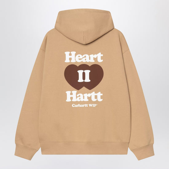 Carhartt WIP sweatshirt made of heavy brushed cotton-polyester jersey for a fleece effect in Dusty Brown colour, characterized by a balloon cut, dropped shoulders, ribbed finishes, heart-shaped fabric application, back graphic print, adjustable hood with drawstring, a kangaroo pocket, and zip closure. Size and Fit - Model wears size L Model measurements: Height: 187 cm Chest: 102 cm Waist: 76 cm Hips: 92 cm