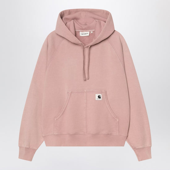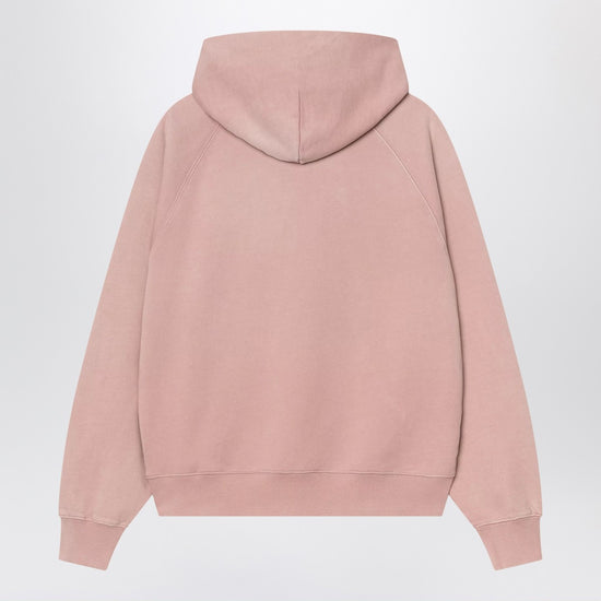 Carhartt WIP sweatshirt in heavy unbrushed cotton jersey in Daphne colour, characterized by a balloon cut, dropped shoulders, ribbed finishes, design with chalk wash treatment for a faded effect, a front kangaroo pocket with square fabric logo label, and an adjustable hood with drawstring. Size and Fit - Model wears size S Model measurements: Height: 179 cm Chest: 83 cm Waist: 61 cm Hips: 88 cm