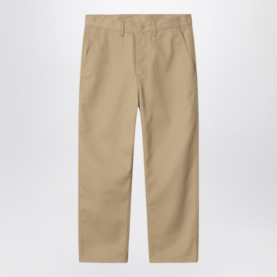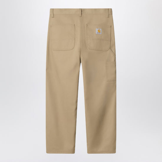 Leather-coloured heavy cotton twill trousers from Carhartt WIP featuring a comfortable tapered leg, triple stitching, tool pockets, square fabric logo label on the back, relaxed tapered fit, normal waist, zip and button front fastening, belt loops and two side welt pockets. Size and Fit - Model wears size L Model measurements: Height: 185 cm Chest: 100 cm Waist: 83 cm Hips: 92 cm