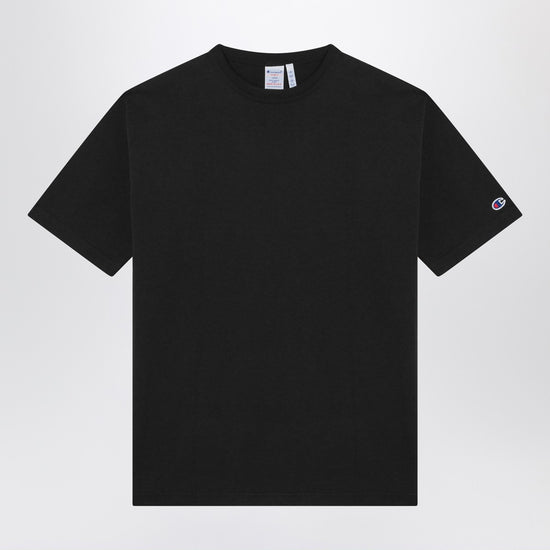 Black cotton Champion crew-neck T-shirt, featuring short sleeves with small logo patch and straight hem.