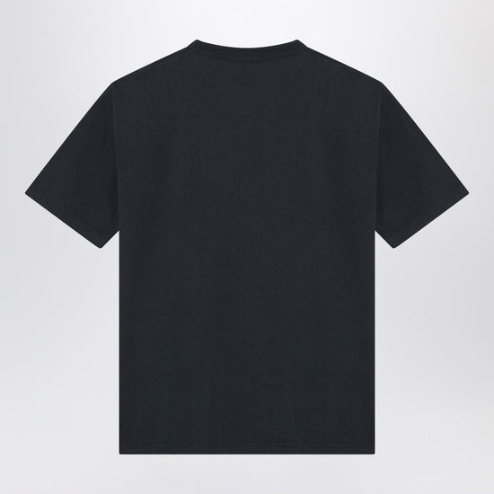 Navy blue cotton Champion crew-neck T-shirt, featuring short sleeves with small logo patch and straight hem.
