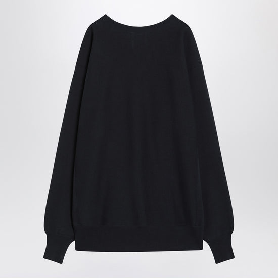 Navy blue cotton blend Champion crew neck sweatshirt, featuring long sleeves, a loose fit, contrasting print on the front, and ribbed edges. Size and Fit - Model wears size M Model measurements: Height: 187 cm Chest: 102 cm Waist: 76 cm Hips: 92 cm