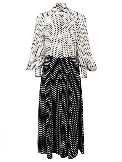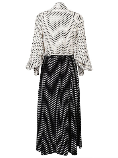 Black dress, polka dot, white part white, buttons closure, long, buttons on the wrists. Polka dot silk midi dress Size and Fit - This piece fits true to size. We recommend you get your regular size. Model is 1,75m / 5ft 8in wearing size 1 (NUM)