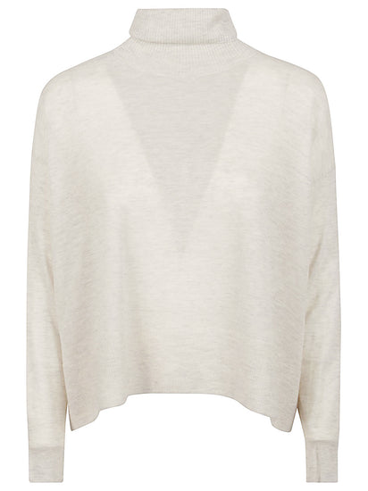 Turtleneck sweater, long sleeves, ribbed hems and flared cut. Cashmere high-neck sweater Size and Fit - This piece fits true to size. We recommend you get your regular size. Model is 1,75m / 5ft 8in wearing size 36 (FR)