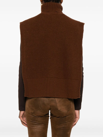 brown ribbed knit sleeveless turtleneck straight hem wool Wool turtle-neck sweater