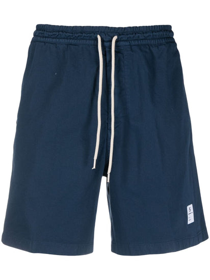 drawstring stretch-cotton shorts from Department 5 featuring prussian blue, stretch-cotton, logo patch to the side, elasticated drawstring waistband, rear zip-fastening pocket and straight leg. Drawstring shorts Size and Fit - This piece fits true to size. We recommend you get your regular size. Model is 1,84m / 6ft 1in wearing size M