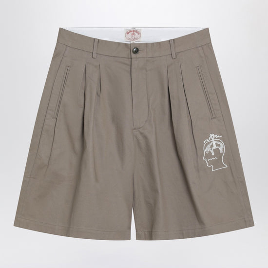 Brain Dead Bermuda shorts in collaboration with Brooks Brothers in desert cotton, featuring front zip and button fastening, belt loops, two side pockets, two welt pockets at the back, rear logo patch, contrast logo embroidery on the front and front pleats.