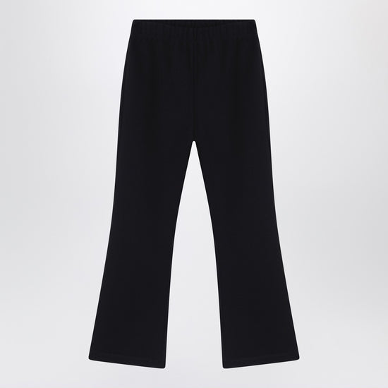 Douuod pants in black viscose blend, characterized by an elasticated waist, flared leg, and rear logo patch.