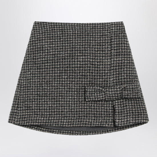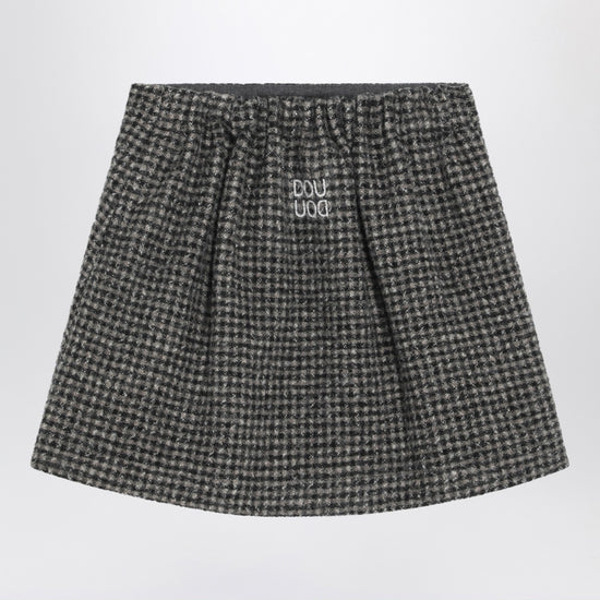 Douuod skirt in ebony and beige checked virgin wool, featuring a bow at the bottom that ends in a small slit, elasticated waist at the back and logo lettering embroidery on the back.