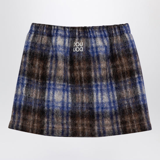 Grey and blue checked wool-blend skirt by Douuod, featuring lettering logo on the back and elasticated waist.