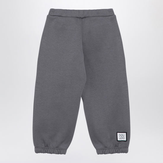 Grey cotton blend jogging trousers from Douuod featuring an elasticated waistband, two side welt pockets and logo patch on the back.