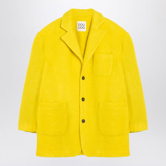 Yellow wool-blend single-breasted coat from Douuod featuring a front button placket, long sleeves with buttoned cuffs, classic lapels, three patch pockets on the front and a back vent.