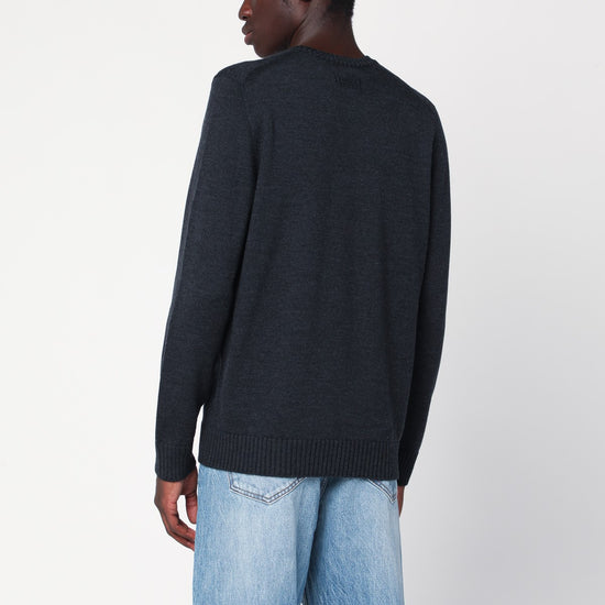 Drumohr crew neck sweater in charcoal grey wool, characterized by long sleeves and ribbed edges. Size and Fit - Model wears size 50 IT Model measurements: Height: 187 cm Chest: 102 cm Waist: 76 cm Hips: 92 cm