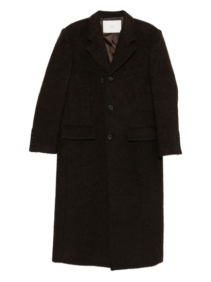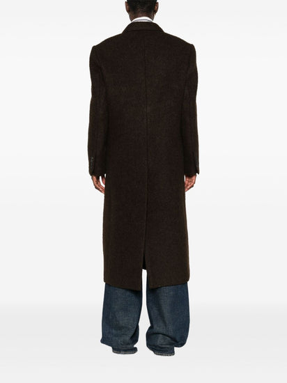brown front button fastening front flap pockets long sleeves notched lapels Wool single-breasted coat