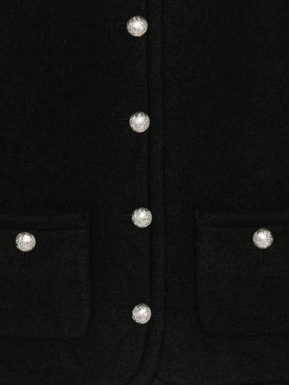 black pearl buttons patch pockets round neck long sleeves button fastening Wool tweed jacket