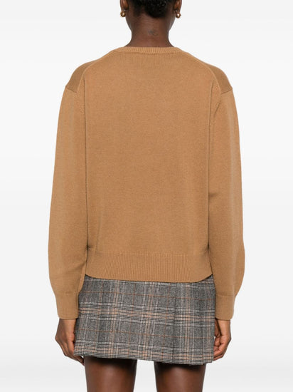camel brown cashmere long sleeves crew neck ribbed cuffs and hem straight hem Wool crewneck sweater
