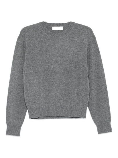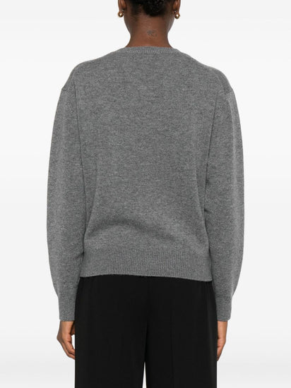 grey round neck long sleeves ribbed cuffs straight hem Wool crewneck sweater
