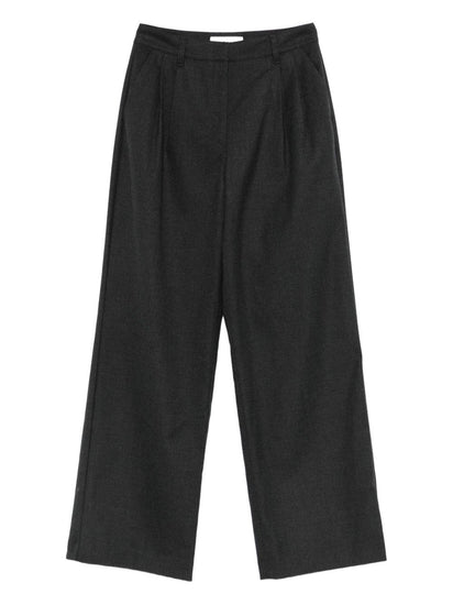 charcoal grey concealed front fastening belt loops pleated details front diagonal pockets