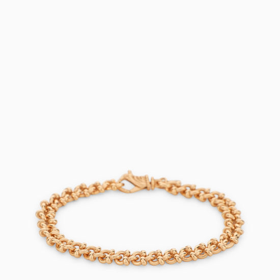Fancy chain bracelet with knots by Emanuele Bicocchi in 925 gold-plated silver, featuring a hook fastening and engraved logo. The product is handmade and may vary slightly from the image. Emanuele Bicocchi jewellery is made in 925 untreated and burnished silver, which gives it an antique look. The plating may fade over time, therefore it is advised to not expose the jewellery to corrosive/aggressive agents.