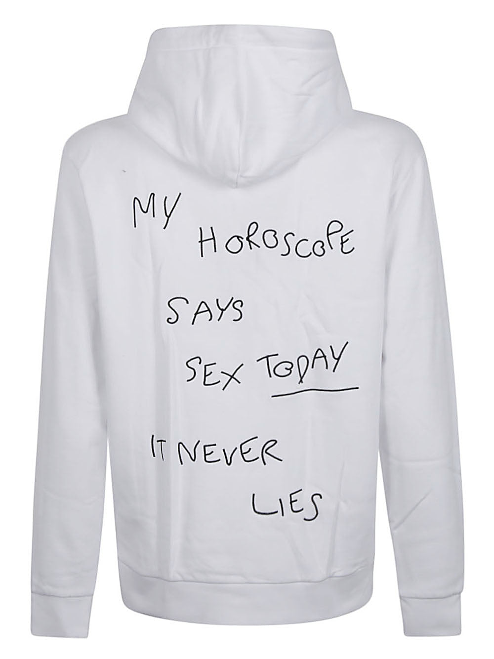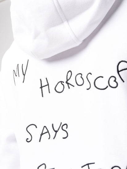 embroidered slogan hoodie from Encrè. featuring embroidered slogan, drawstring hood, long sleeves, straight hem, white/black and cotton. Cotton hoodie Size and Fit - This piece fits true to size. We recommend you get your regular size. Model is 1,84m / 6ft 1in wearing size M