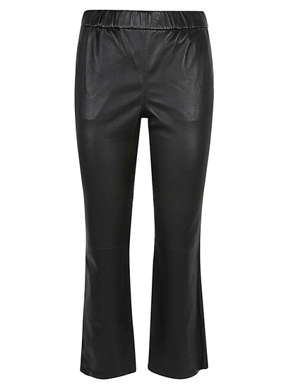 Straight trousers without closure, with elastic alive, two front pockets and one rear. Leather trousers Size and Fit - This piece fits true to size. We recommend you get your regular size. Model is 1,75m / 5ft 8in wearing size 36 (FR)