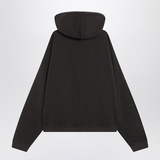 Hooded sweatshirt by Enfants Riches Déprimés in heavy faded black cotton with a vintage effect, characterized by long sleeves, dropped shoulders, a front kangaroo pocket, ribbed edges, logo print on the chest and back in contrast, zip closure, and a boxy fit. Size and Fit - Model wears size L Model measurements: Height: 187 cm Chest: 102 cm Waist: 76 cm Hips: 92 cm