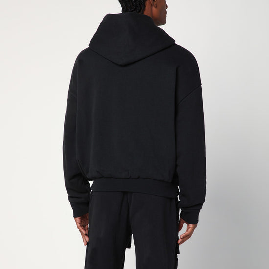 Oversized sweatshirt by Entire Studios in black cotton, featuring a fixed hood, long sleeves, two side welt pockets, dropped shoulders, and ribbed edges. Size and Fit - Model wears size L Model measurements: Height: 187 cm Chest: 102 cm Waist: 76 cm Hips: 92 cm