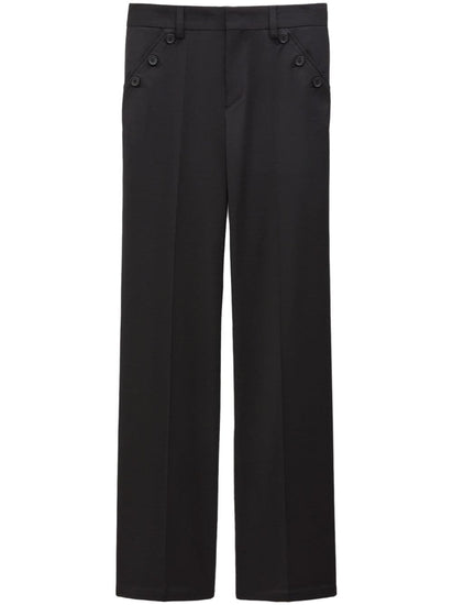black wool blend stretch-design high-waisted belt loops waist tabs concealed front fastening two side button-fastening pockets pressed crease two rear welt pockets straight leg Straight leg tailored trousers Size and Fit - This piece fits true to size. We recommend you get your regular size. Model is 1,75m / 5ft 8in wearing size 36 (FR)