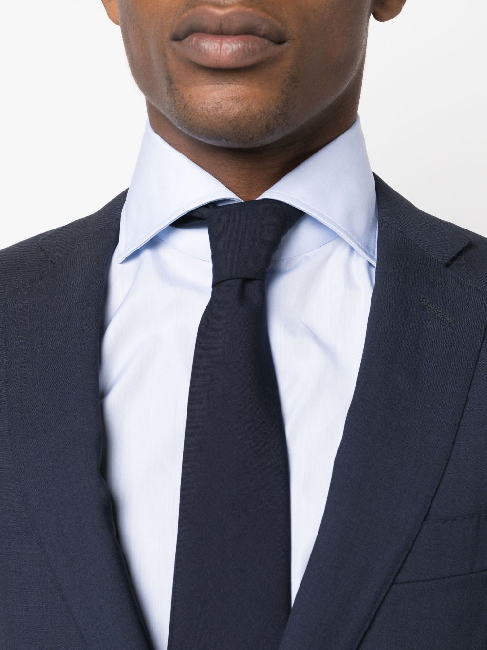 light blue cotton cutaway collar front button fastening long sleeves buttoned cuffs curved hem Napoli cotton shirt