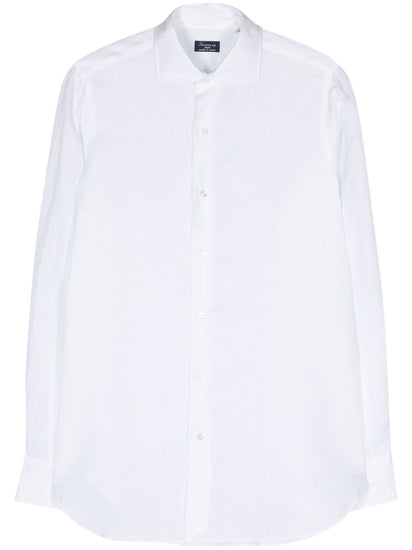 white cotton-linen blend semi-sheer construction classic collar front button fastening long sleeves buttoned cuffs hem gusset curved hem Napoli cotton shirt