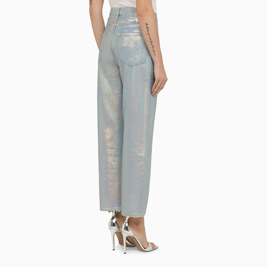 Straight jeans made of recycled cotton denim in Hologram blue by Frame, featuring a front zip and button fastening, a high waist, belt loops and classic five pockets. Size and Fit - Model wears size 27 Model measurements: Height: 177 cm Chest: 87 cm Waist: 67 cm Hips: 91 cm