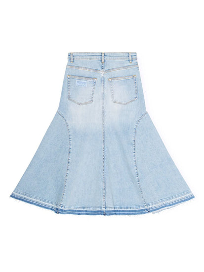 light blue cotton washed denim mid-rise belt loops front button and zip fastening classic five pockets A-line Organic cotton denim skirt Size and Fit - This piece fits true to size. We recommend you get your regular size. Model is 1,75m / 5ft 8in wearing size 36 (FR)