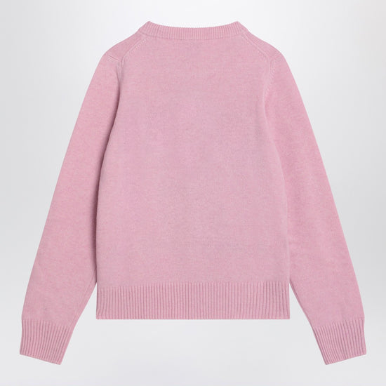 Ganni round-neck sweater in pink wool blend, featuring a front intarsia with a poodle and logo lettering, long sleeves, ribbed edges, and a regular fit. Size and Fit - Model wears size S Model measurements: Height: 179 cm Chest: 82 cm Waist: 65 cm Hips: 90 cm