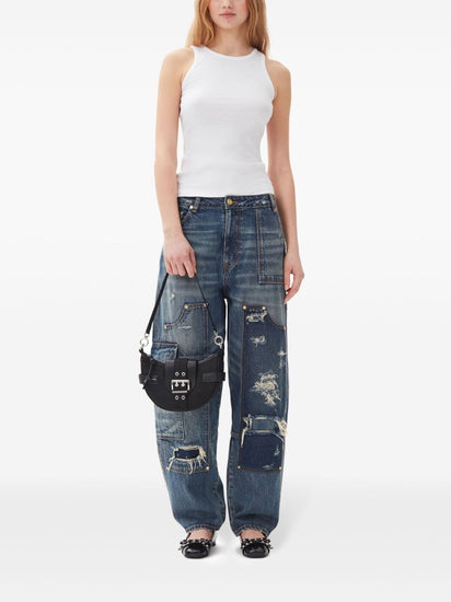 black recycled nylon embossed logo to the front front buckle fastening top zip fastening detachable shoulder strap adjustable detachable shoulder strap main compartment This piece comes complete with a protective dust bag. This item is made from at least 50% recycled or upcycled materials. For recycled synthetic clothing products, we highly recommend using a microfibre-catching washing bag to ensure that no microplastics that can pollute water are released in the process. We've partnered with Good On You — an independent agency that rates how brands perform in relation to their impact on the planet, people and animals, with a multi-criteria rating simplified to a five points scale. In order to be awarded our conscious label, larger brands need to score a minimum of four out of five ('Good'), while smaller brands must score at least three out of five ('It's A Start'). This item comes from a brand rated three out of five ('It's A Start') by Good on You at the time it was added on FARFET Bucky small shoulder bag Size and Fit - Width 9,06 in / 23 cm Height 6,5 in / 16,5 cm Depth 2,36 in / 6 cm Strap 7,87 in / 20 cm