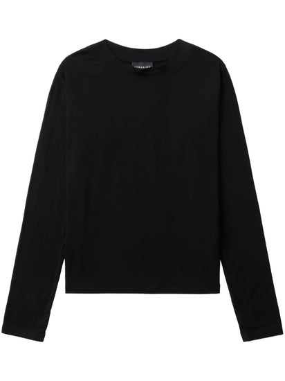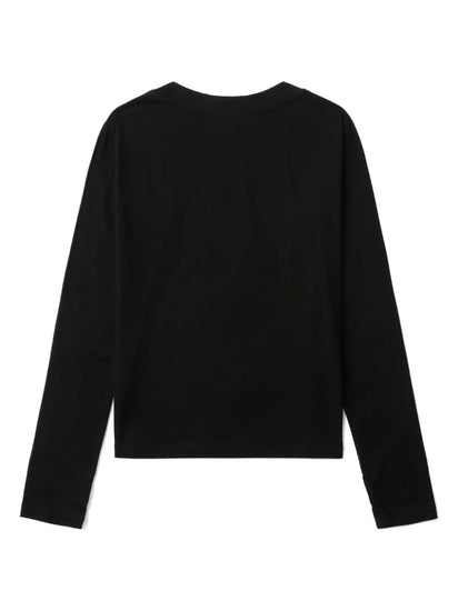 jet black organic cotton blend stretch-design thumb slots round neck long sleeves straight hem This item is made from at least 50% organic materials. Learn more about what makes a product Conscious on our Conscious Criteria page Laura organic cotton top Size and Fit - This piece fits true to size. We recommend you get your regular size. Model is 1,75m / 5ft 8in wearing size S