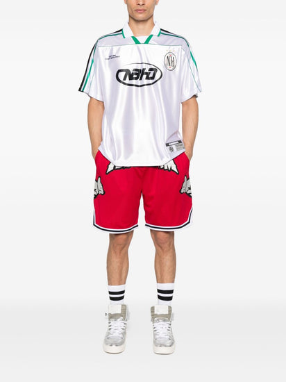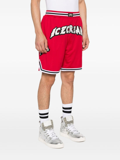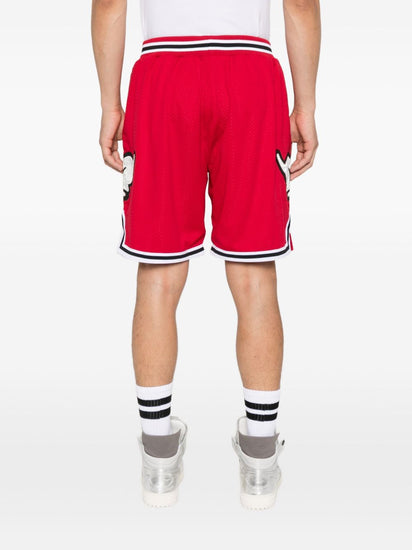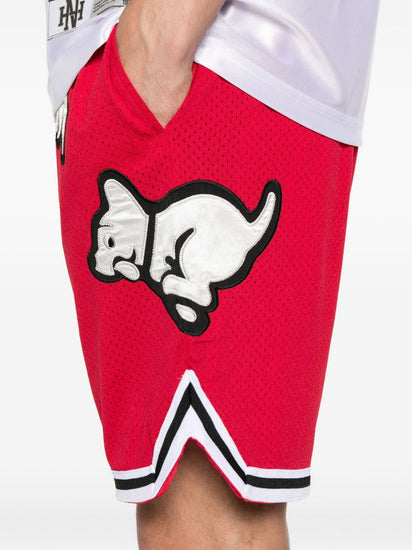 red Running Puppy appliqué striped trim elasticated waistband Running Puppy shorts
