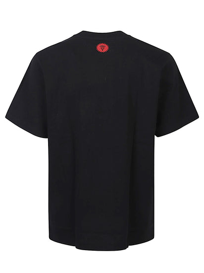 Black, green checked pattern, oval graphic, dog motif, short sleeves, round neck. Checker running dog t-shirt